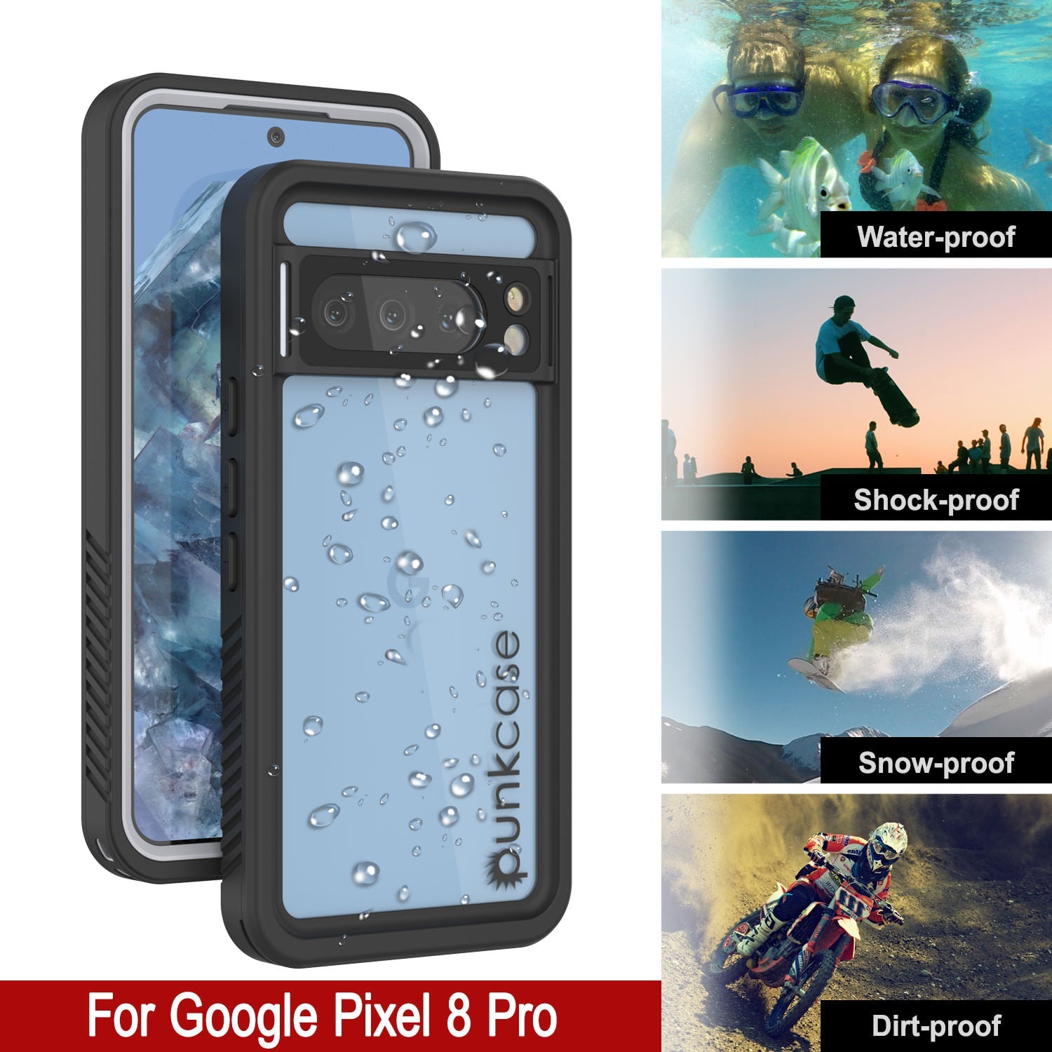 Étui étanche Google Pixel 8 Pro, Punkcase [Série Extrême] [Slim Fit] [Certifié IP68] [Antichoc] [Antineige] [Antipoussière] Couverture blindée avec protecteur d'écran intégré pour Google Pixel 8 Pro (6.7") (2023) [Blanc]