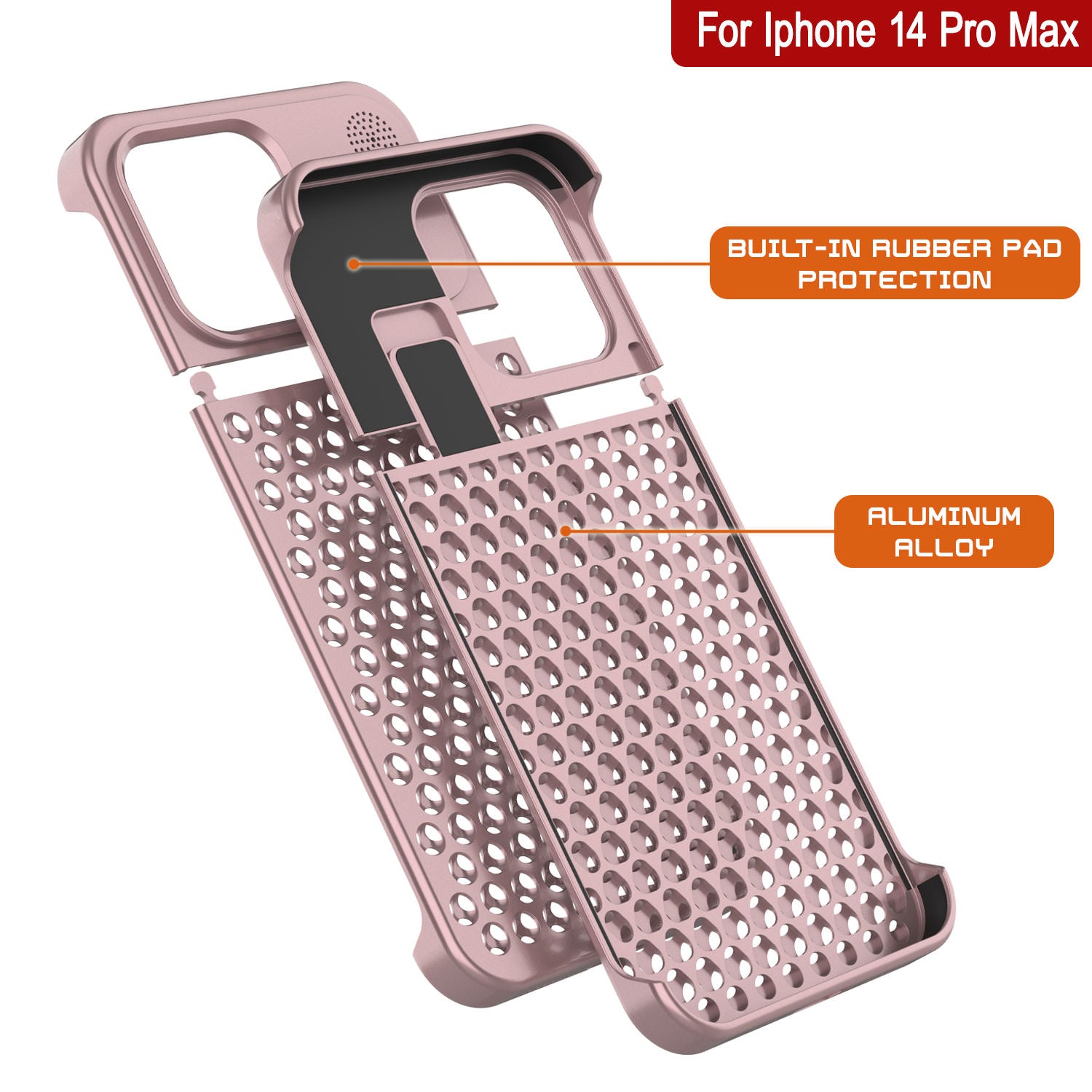 Coque PunkCase pour iPhone 14 Pro Max en alliage d'aluminium [Série Fortifier Extreme] Coque en métal ultra résistante et légère avec fonction aromathérapie et design sans bordure pour iPhone 14 Pro Max (6,7") [Rose-Gold]