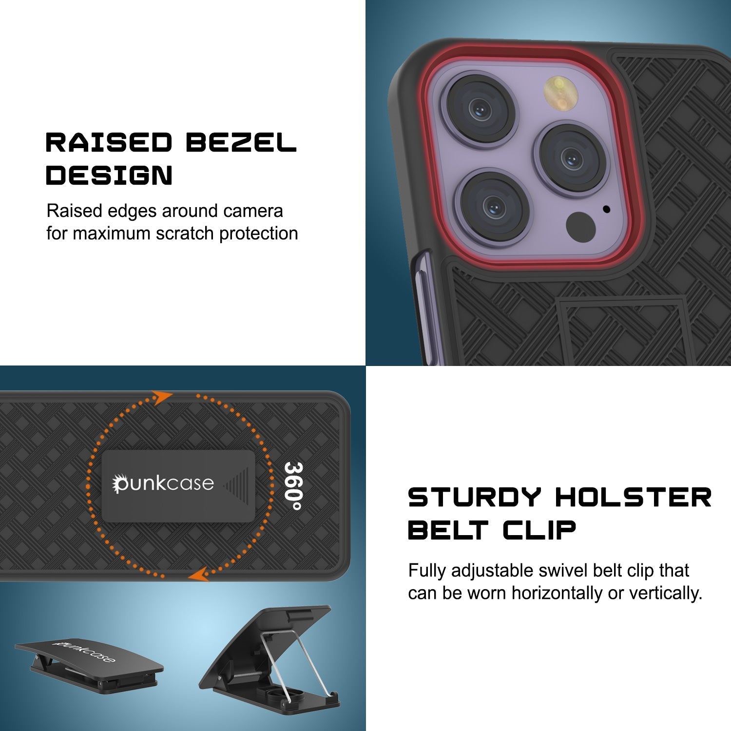 - ★ COQUE CEINTURE HOLSTER PUNKCASE iPhone 15 Pro : Coque hybride ultra polyvalente et durable en deux pièces avec fonction clip ceinture sécurisée, béquille intégrée et grip antidérapant. Transportez votre iPhone 15 Pro avec vous en toute commodité