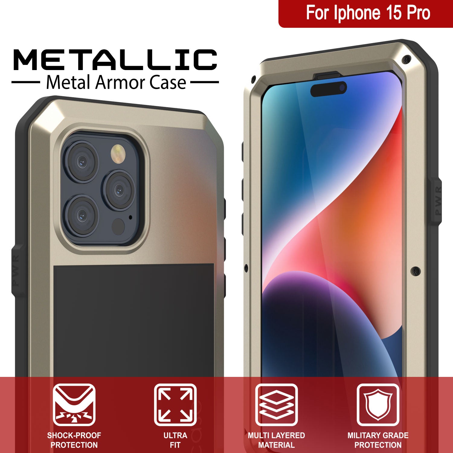 Coque Punkcase pour iPhone 15 Pro en métal | Coque de protection militaire robuste [Antichoc] en aluminium dur et TPU avec protection d'écran en verre trempé pour iPhone 15 Pro (6,1") (2023)