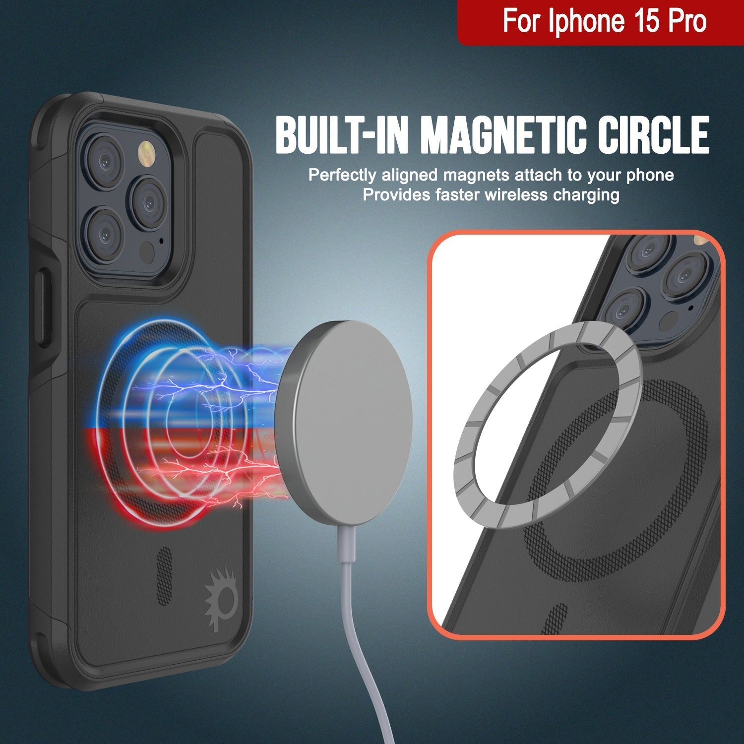 - ★ CERCLE DE CHARGE MAGNÉTIQUE INTÉGRÉ : Chargez votre iPhone 15 Pro sans fil en toute sécurité et facilement grâce au cercle de charge magnétique intégré | Le package comprend un protecteur d'écran en verre trempé SPARTANSHIELD