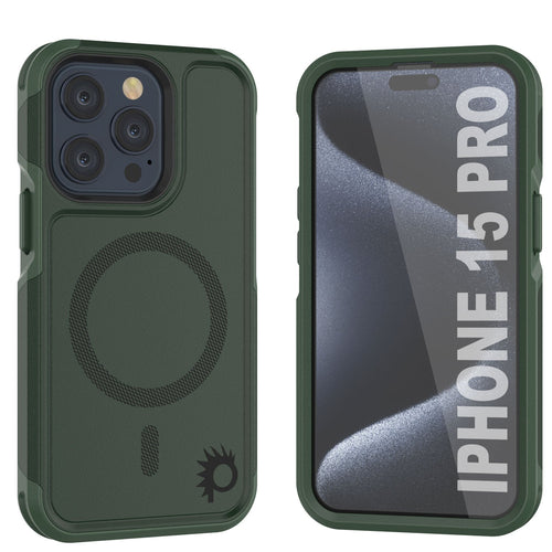 Coque PunkCase pour iPhone 15 Pro, série Spartan 2.0, Coque Robuste Transparente avec Protecteur d'écran intégré [vert foncé]