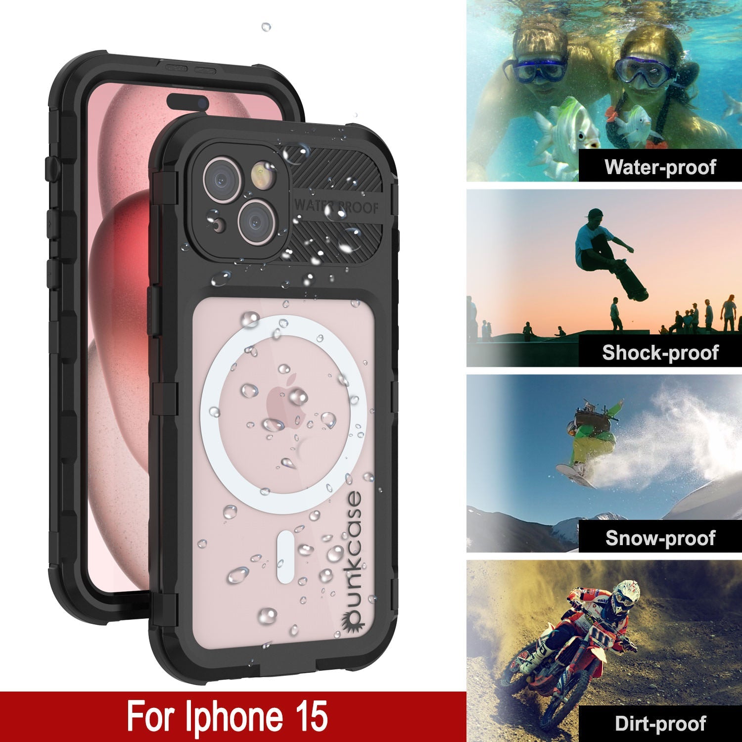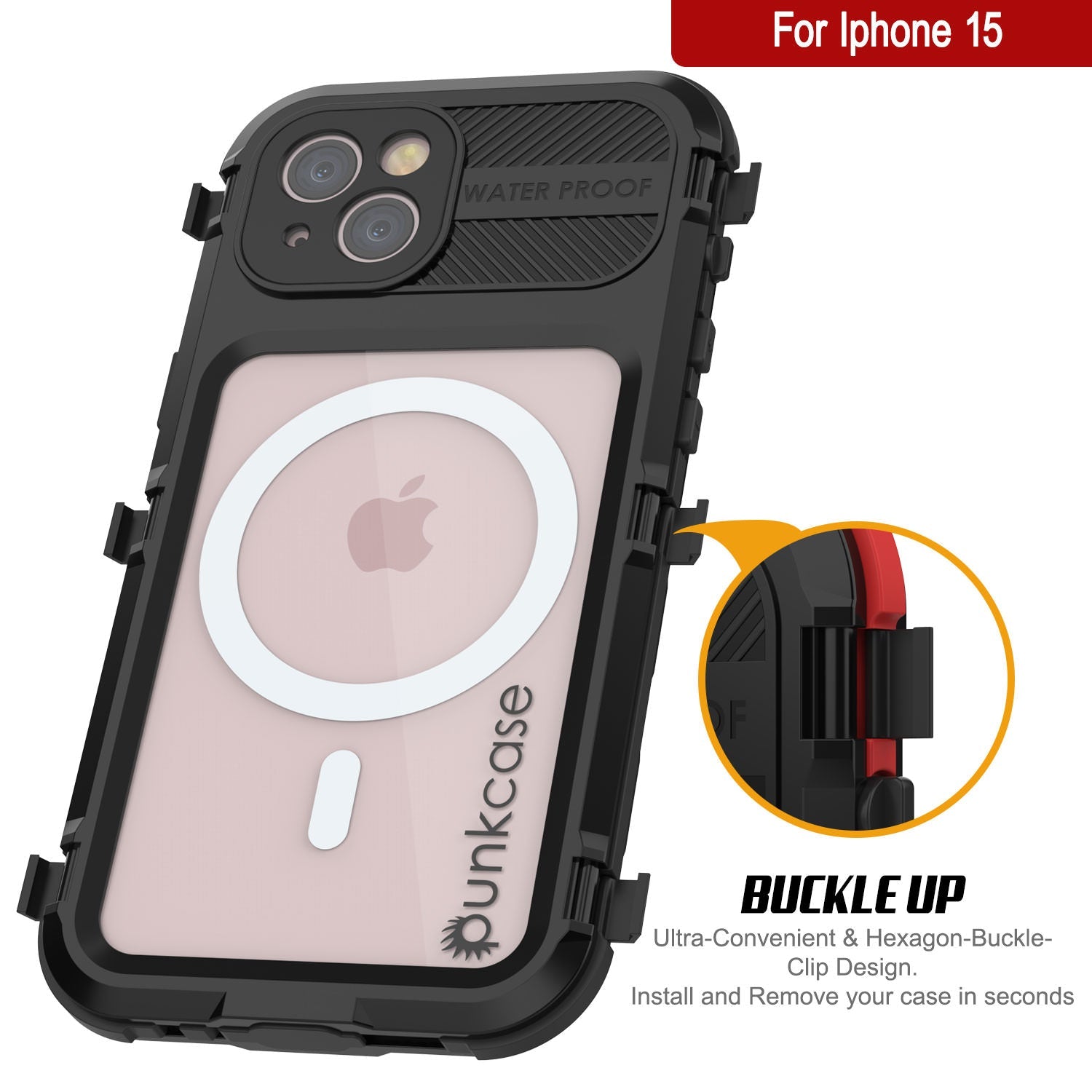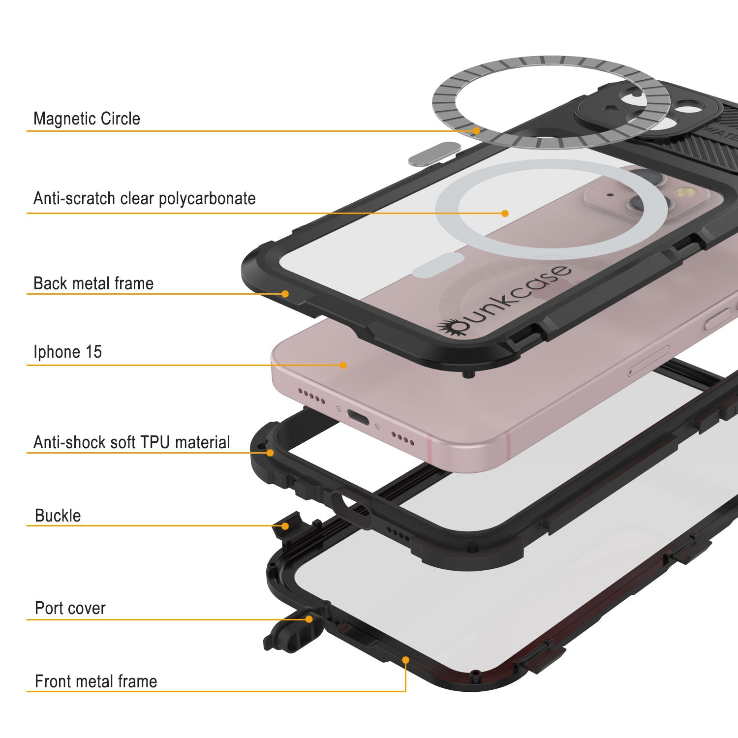 Coque en aluminium étanche Punkcase iPhone 15 [Série Metal Extreme 2.0] Pare-chocs robuste IP68 avec protecteur d'écran intégré | Protection ultime pour votre iPhone 15 (6.1")