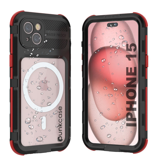 iPhone 15 Série Metal Extreme 2.0 Boîtier en Aluminium Étanche IP68 avec Protecteur d'Écran Intégré [Noir-Rouge]![]()  - Regular price