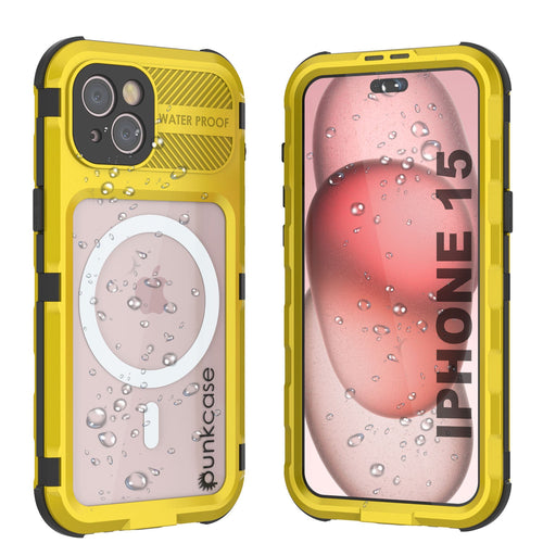 Coque étanche en aluminium de la série iPhone 15 Metal Extreme 2.0 avec protecteur d'écran intégré, de couleur jaune. IP68.![]()  - Regular price