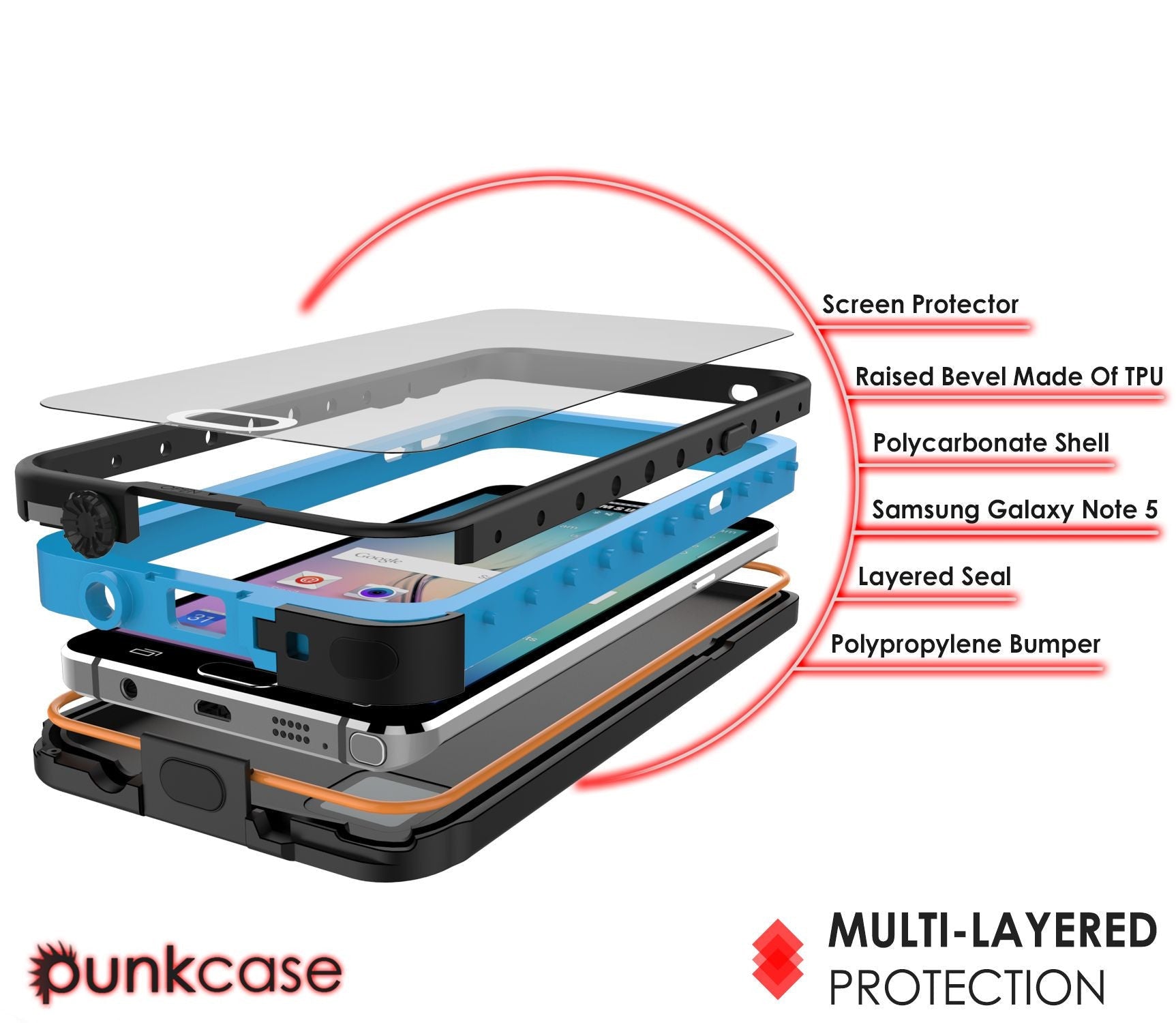 Galaxy Note 5 Waterproof Case, Punkcase StudStar Light Blue Shock/Dirt Proof | Lifetime Warranty (Color in image: red)