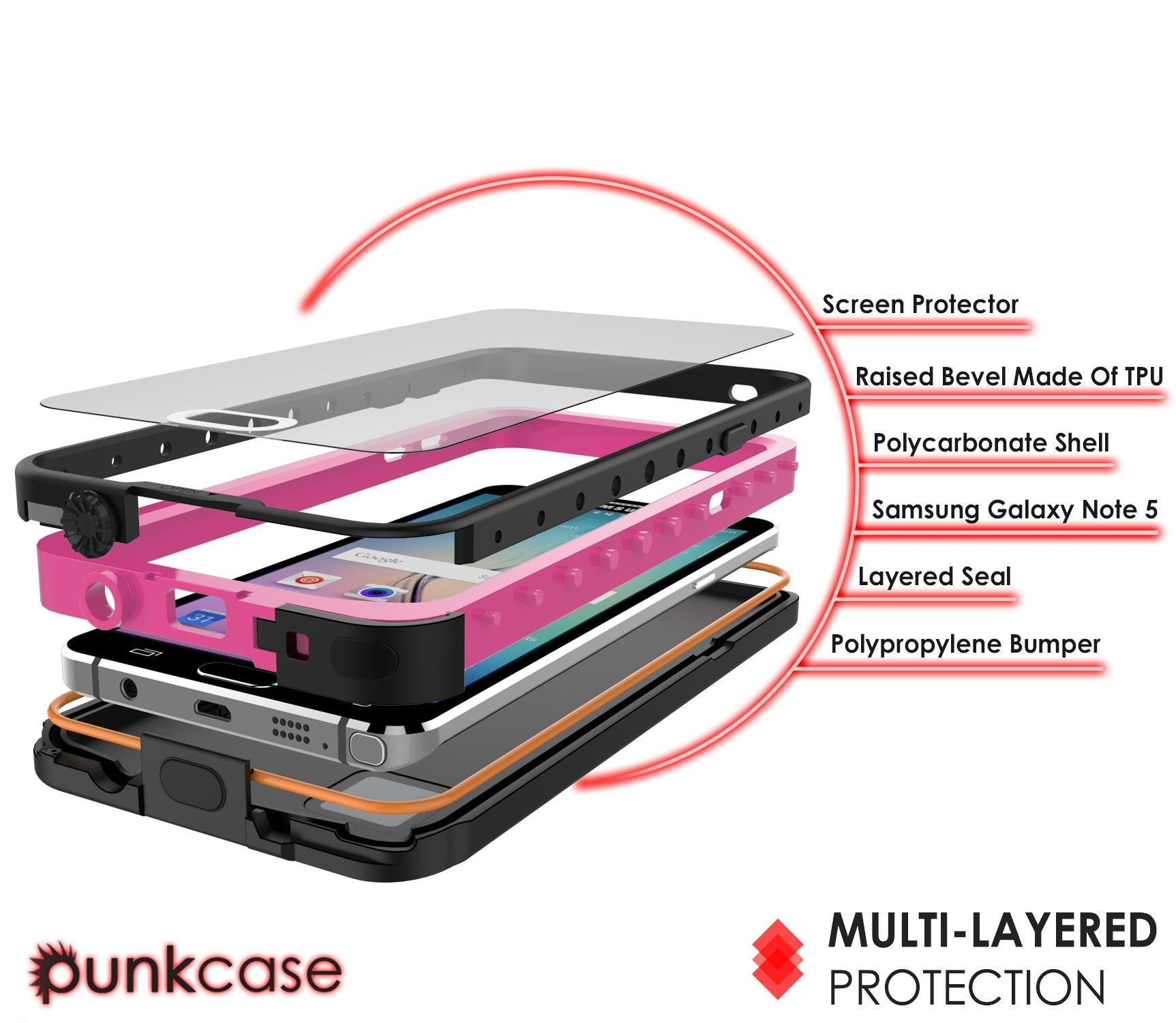 Galaxy Note 5 Waterproof Case, Punkcase StudStar Pink Shock/Dirt/Snow Proof | Lifetime Warranty (Color in image: pink)