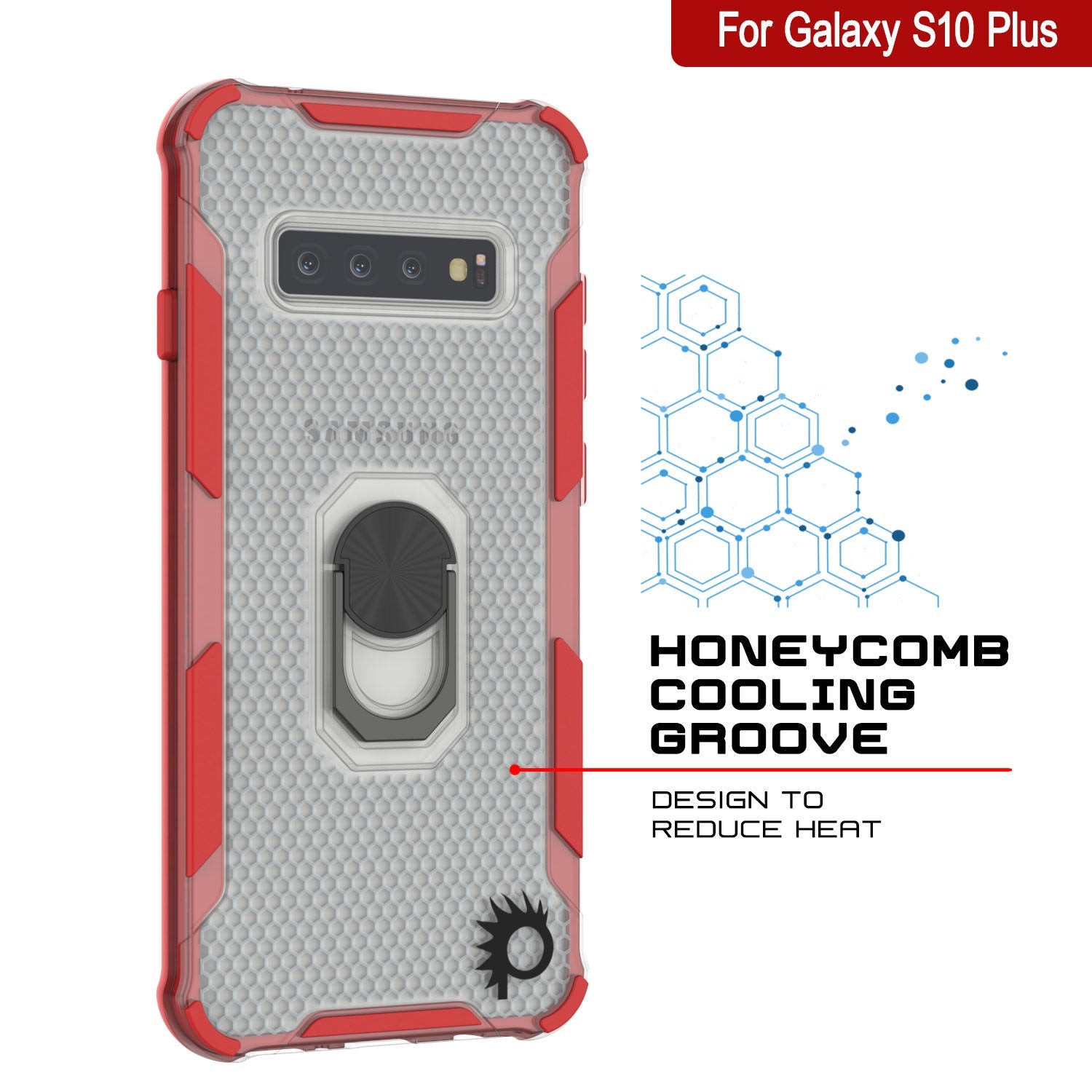 Coque Punkcase pour Galaxy S10 Plus [Série Magnetix 2.0] avec couverture protectrice en TPU transparent, support de bague et support métallique pour fixation magnétique de téléphone de voiture pour Samsung Galaxy S10 (6.4") [Rouge]