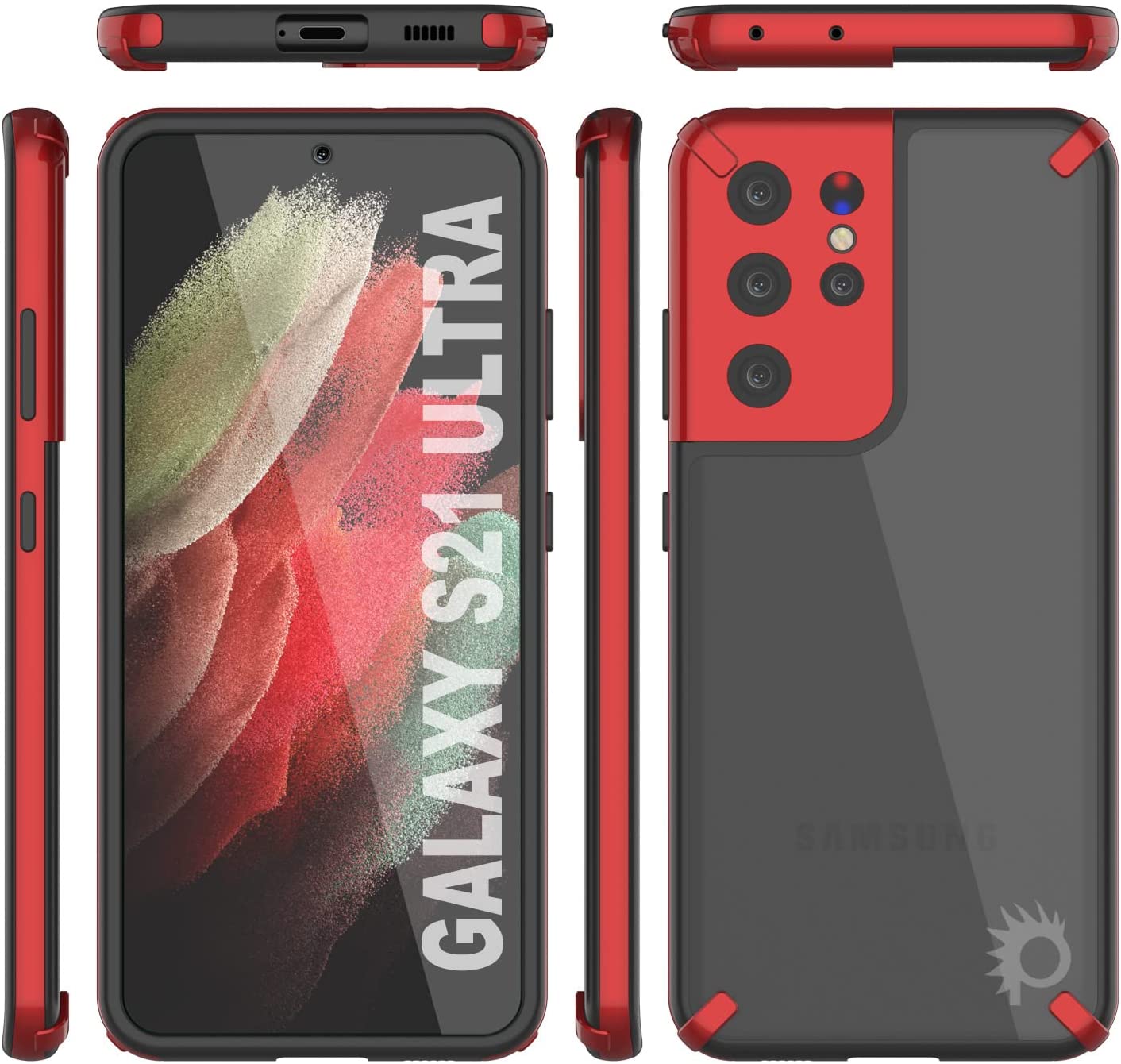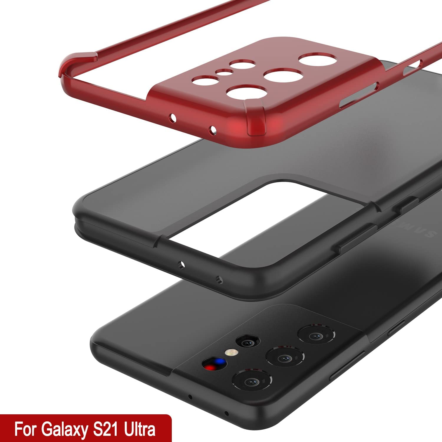 Coque Punkcase pour Galaxy S21 Ultra [Série Mirage] - Étui robuste résistant aux chocs avec renforcement en pare-chocs métallique | Conception de rebord surélevé | Protection ultime pour Galaxy S21 Ultra 5G (6,8 pouces) [Rouge]