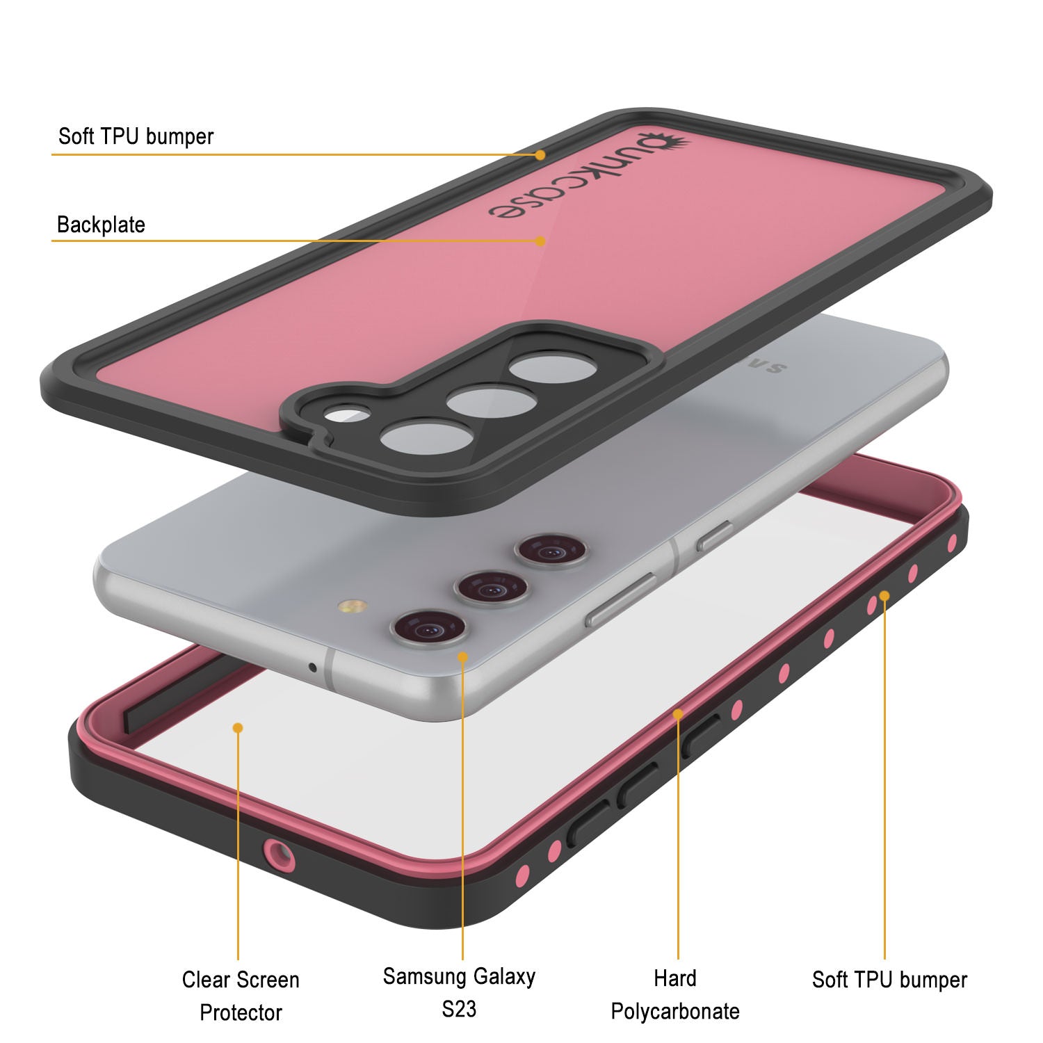 Étui étanche Galaxy S23, étui Punkcase [série StudStar] [ajustement mince] [certifié IP68] [antichoc] [antipoussière] [antigel] pour Samsung Galaxy S23 5G (6,6") [ROSE]