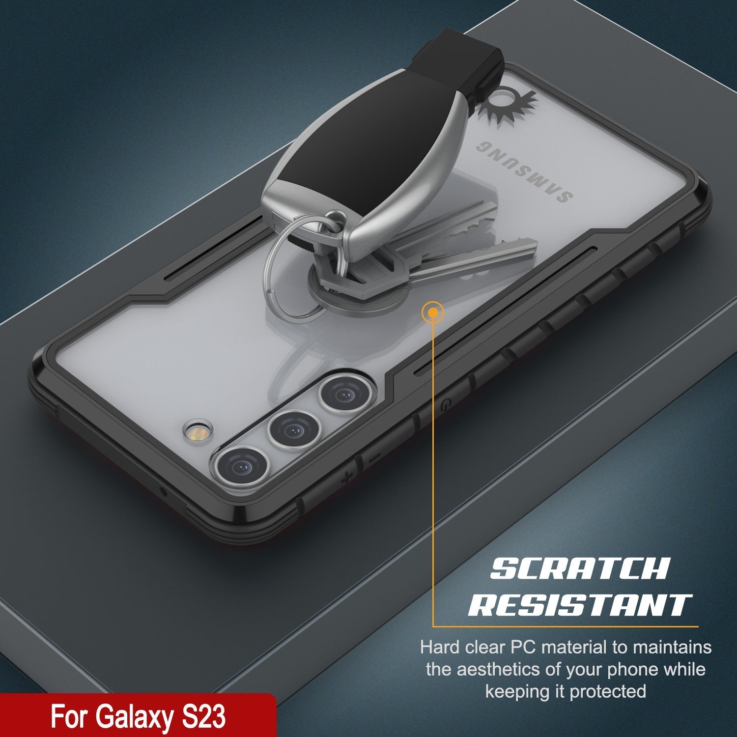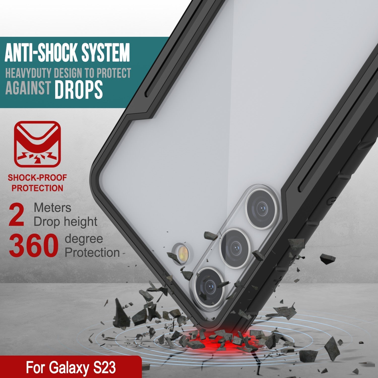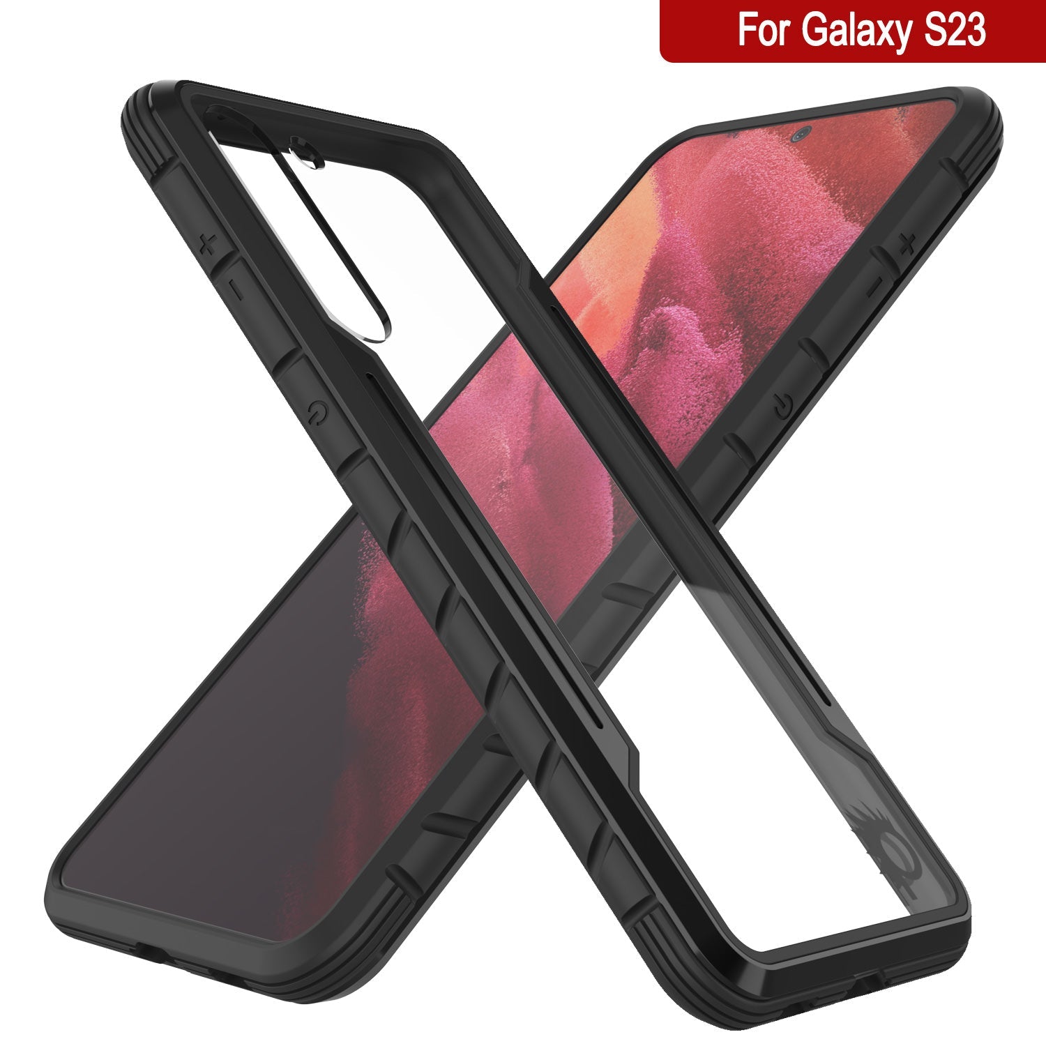 Coque Punkcase Galaxy S23 [Série Armor Stealth Defense] Coque de protection militaire à plusieurs couches avec cadre en aluminium [Dos transparent] Protection ultime contre les chutes pour votre S23 5G (Noir)