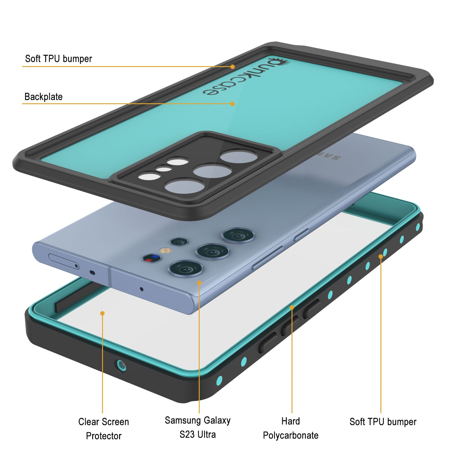 Étui étanche Galaxy S23 Ultra, Punkcase [Série StudStar] [Slim Fit] [Certifié IP68] [Antichoc] [Antipoussière] [Étanche à la neige] Coque de protection pour Samsung Galaxy S23 Ultra 5G (6,8") [TEAL]