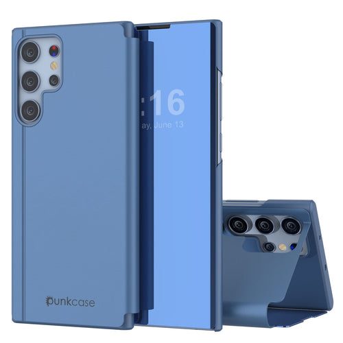 Coque Punkcase Galaxy S23 Ultra à rabat et réfléchissante pour téléphone [bleu]