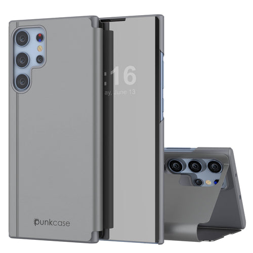 Punkcase Coque Réflective de Protection avec Rabat pour Galaxy S23 Ultra [Argent]