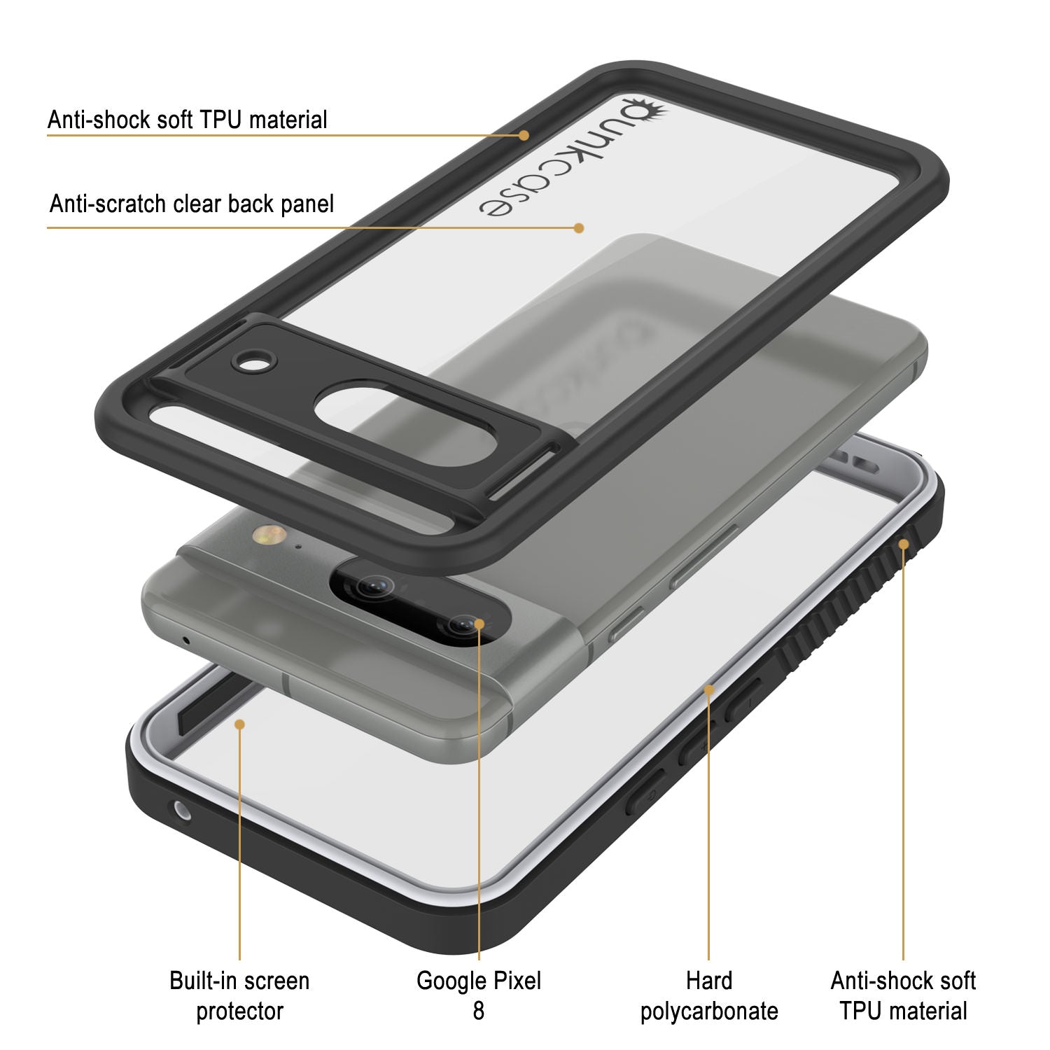 Coque étanche Google Pixel 8, Punkcase [Série Extrême] Coque blindée avec protecteur d'écran intégré [Blanc]