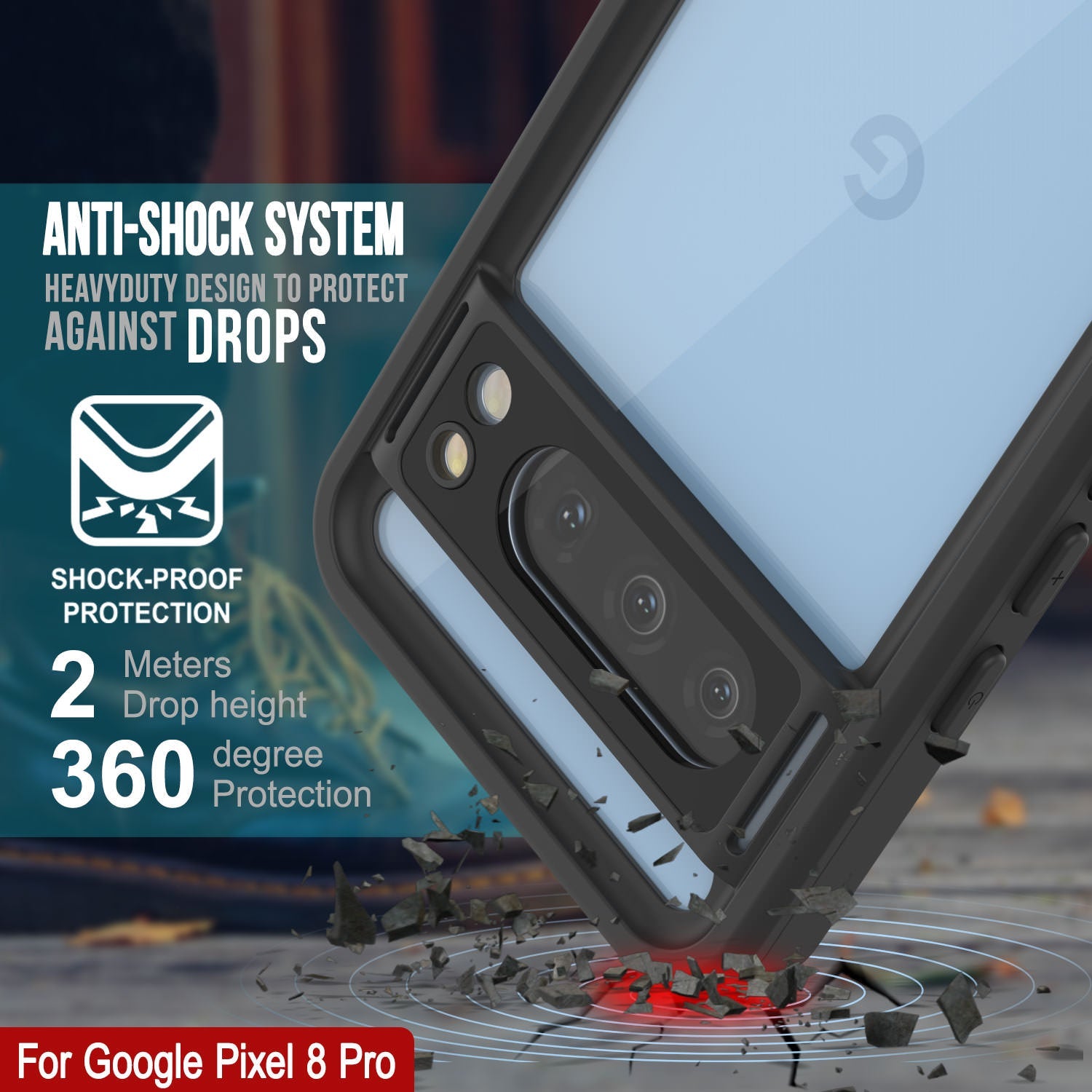 Étui étanche Google Pixel 8 Pro, Punkcase [Série Extrême] [Slim Fit] [Certifié IP68] [Antichoc] [Imperméable à la neige] [Anti-poussière] Coque protectrice avec protecteur d'écran intégré pour Google Pixel 8 Pro (6, 7") (2023) [NOIR]
