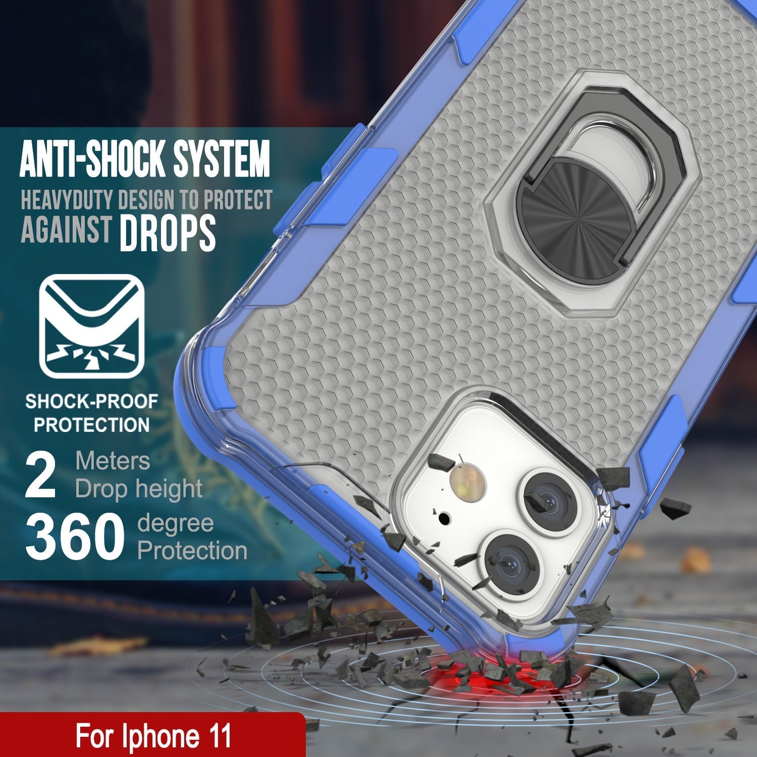 Coque PunkCase pour iPhone 11 [série Magnetix 2.0] Coque de protection transparente en TPU avec support Kickstand, anneau de maintien et plaque métallique pour support magnétique de voiture pour iPhone 11 (6,1") [Bleu]