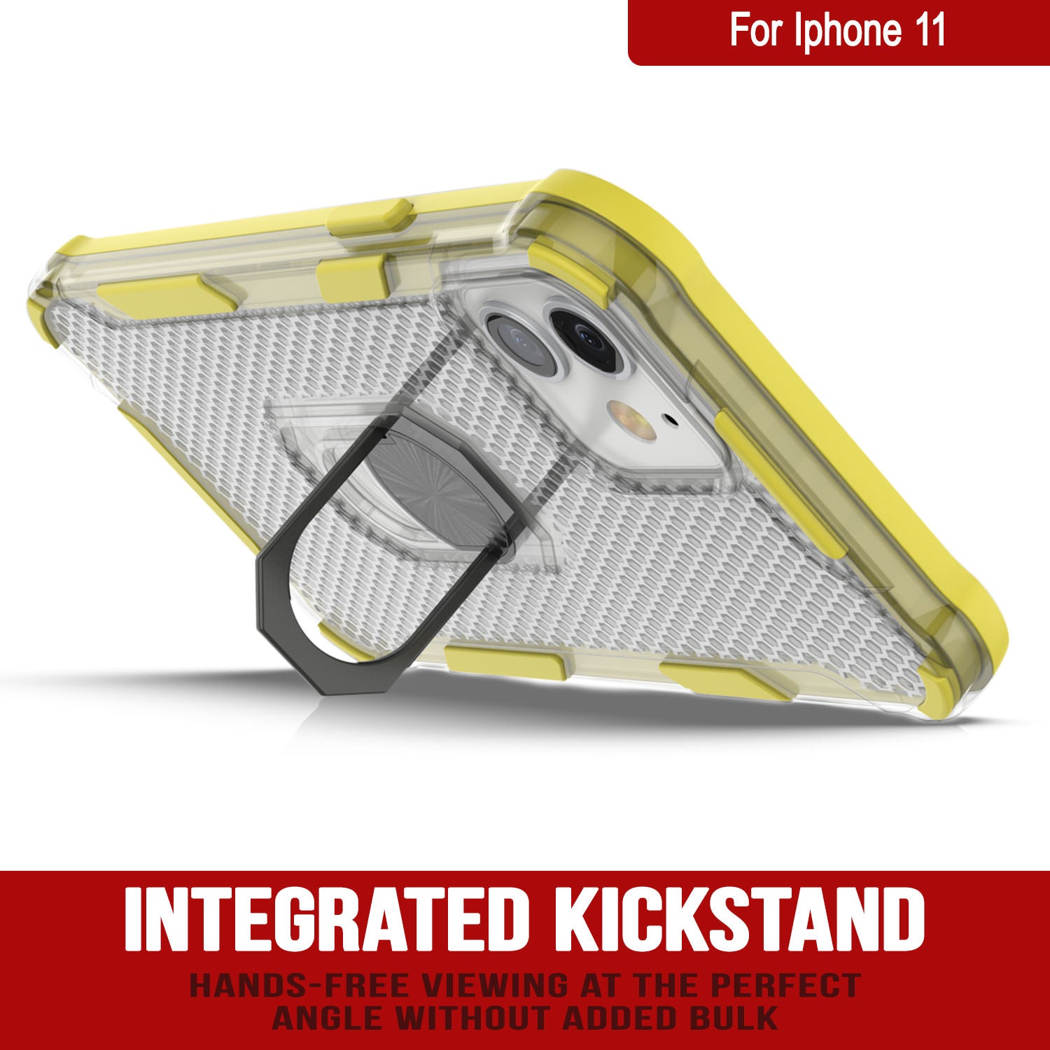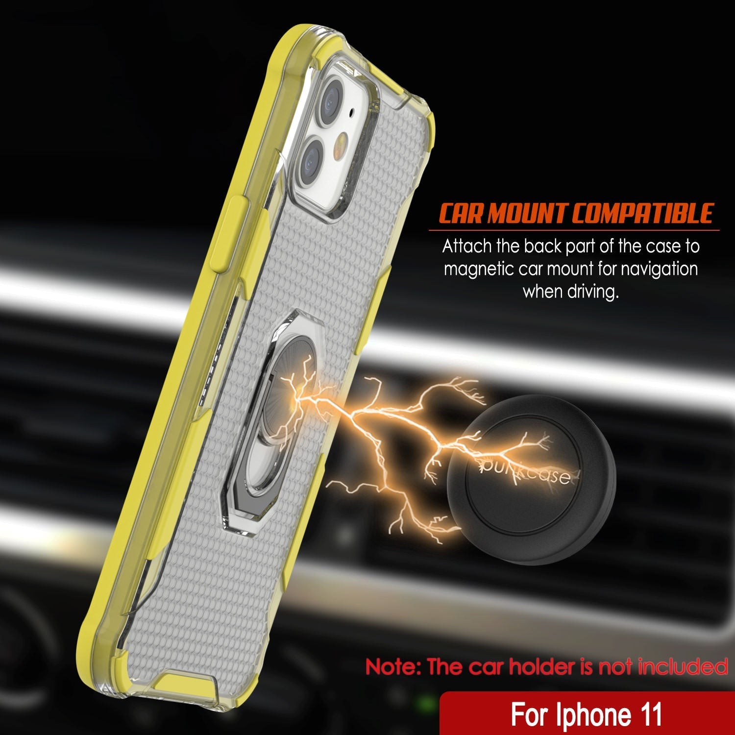 Coque PunkCase pour iPhone 11 [Série Magnetix 2.0] Coque transparente en TPU avec support de pied, support adhérent et plaque métallique pour support de téléphone magnétique pour iPhone 11 (6,1") [Jaune]