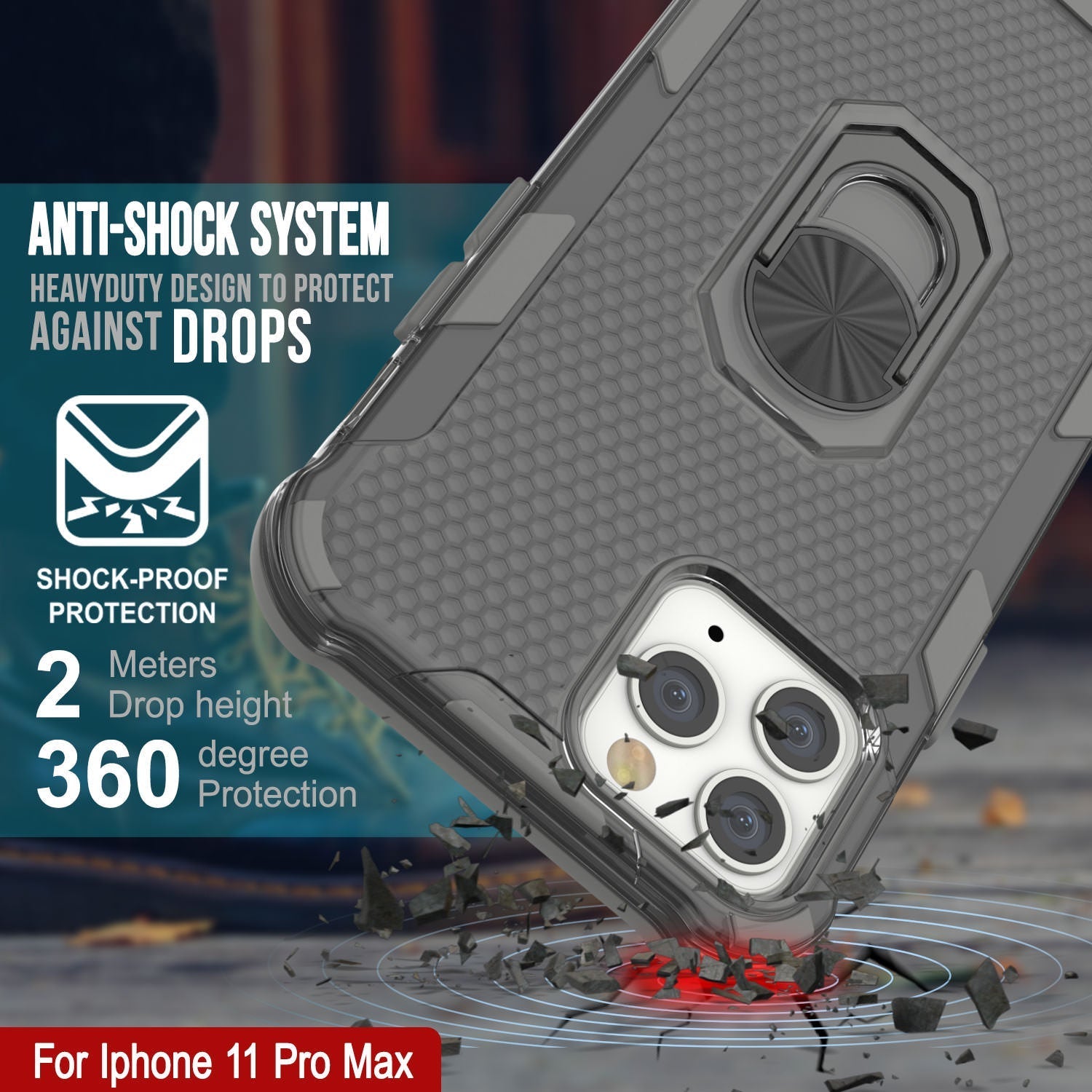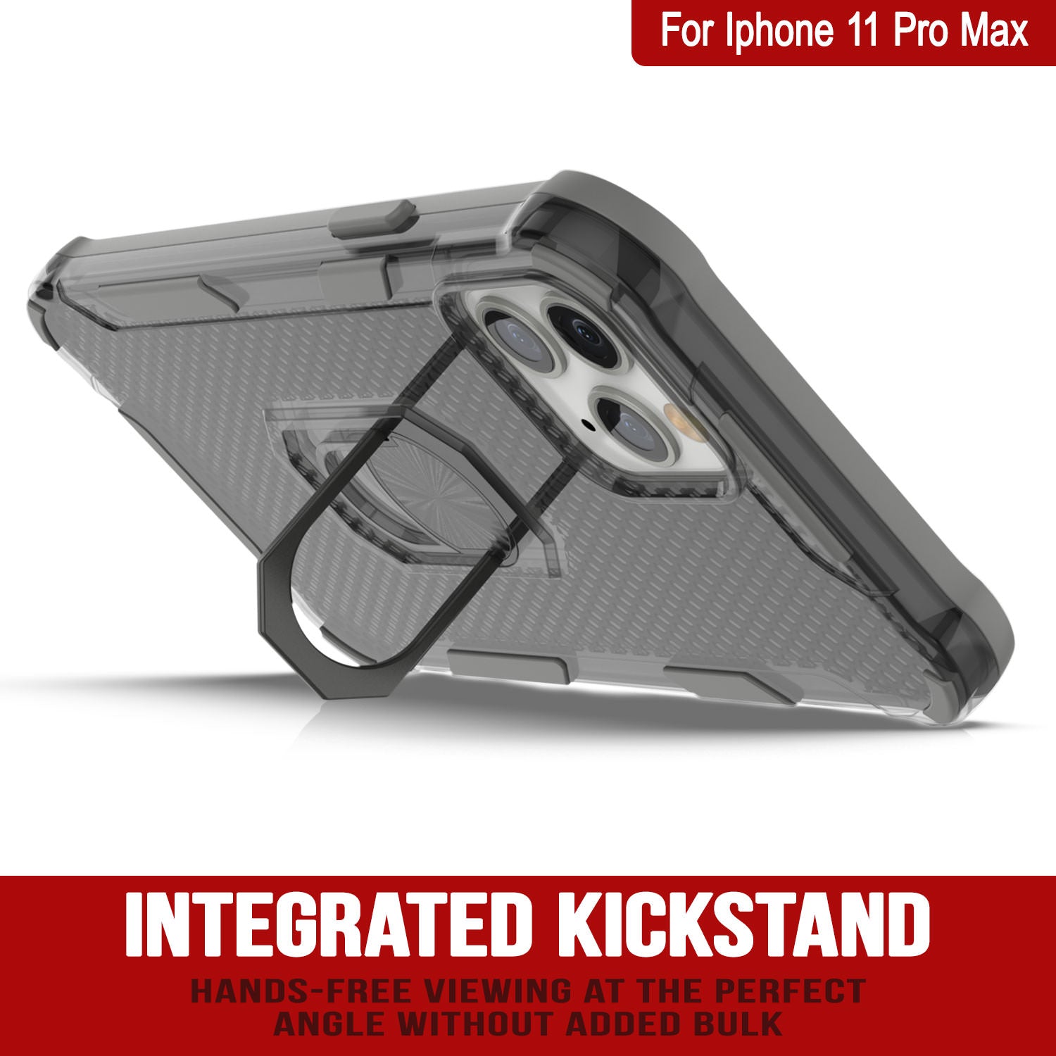 Coque PunkCase pour iPhone 11 Pro Max [Série Magnetix 2.0] - Coque transparente en TPU de protection avec support Kickstand, support Ring Grip et plaque métallique pour support magnétique pour téléphone de voiture pour iPhone 11 Pro Max (6,5") [Gris]