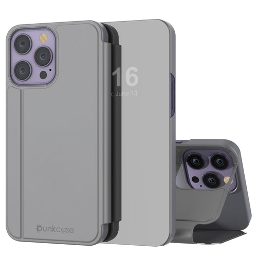 Coque punkcase iPhone 14 Pro Reflecteur, étui de protection à rabat [argent]