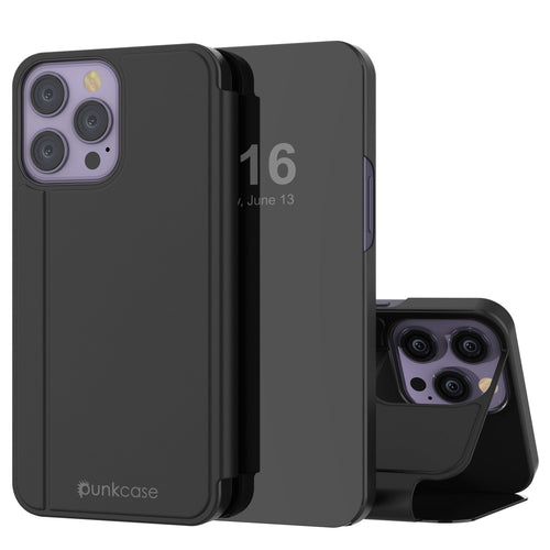 Étui Punkcase iPhone 14 Pro Reflecteur Housse de Protection à Rabat [Noir]