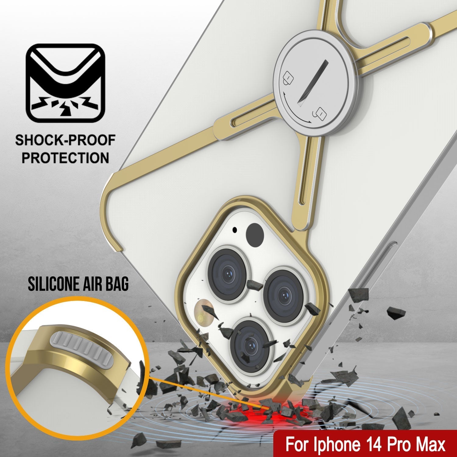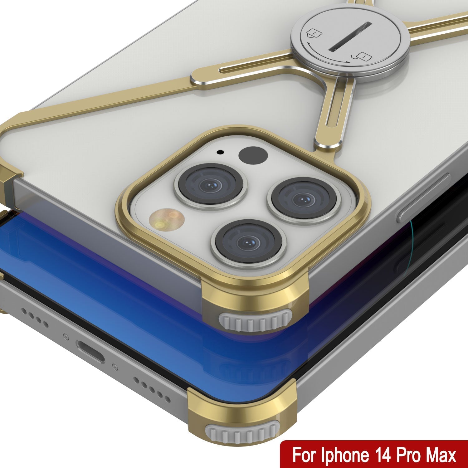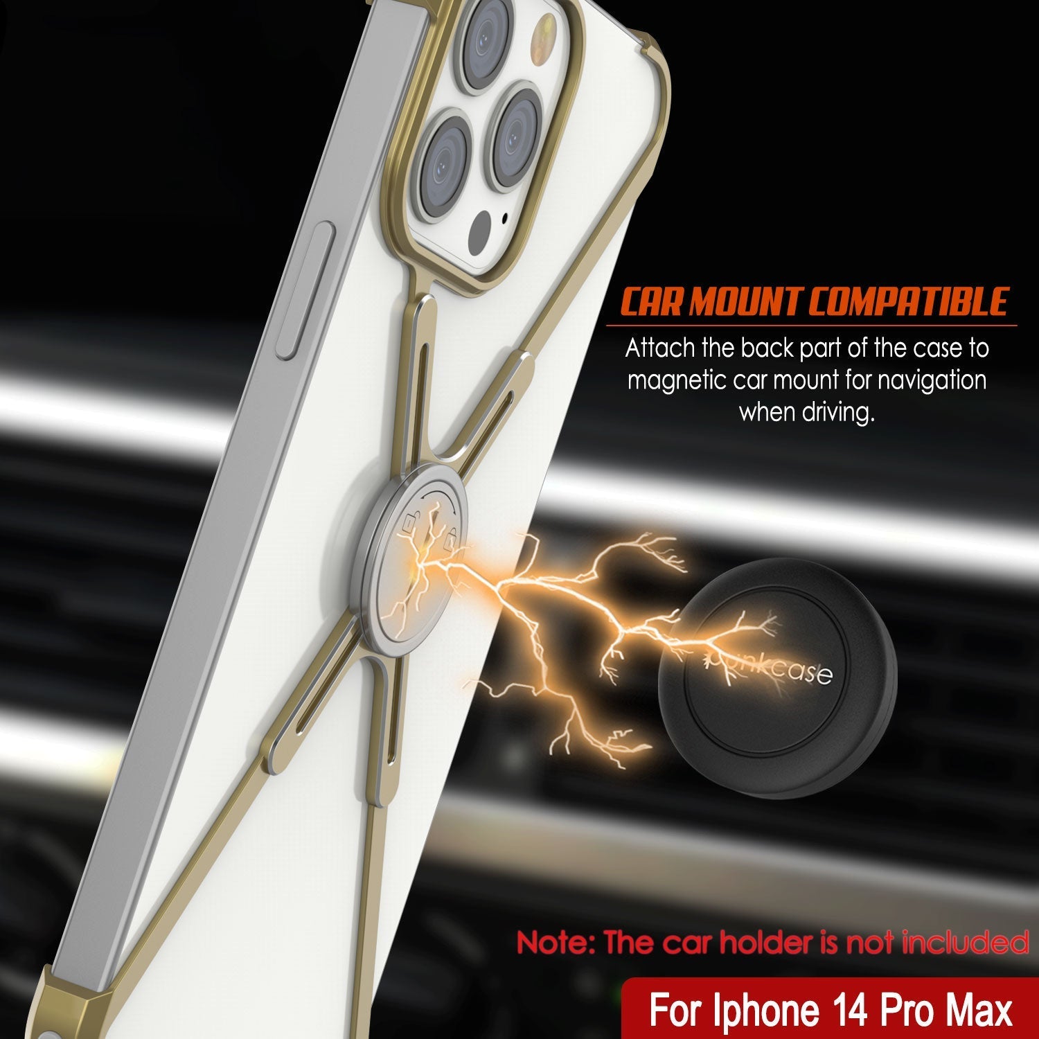 Coque Bumper Punkcase iPhone 14 Pro Max [Série Backbone] Ultra Fine en Aluminium Minimaliste avec Cadre en X pour iPhone 14 Pro Max (2022) (6,7") [Or]
