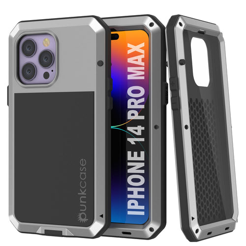 Coque en métal pour iPhone 14 Pro Max, étui résistant de qualité militaire [antichoc], rigide à corps entier [argent].