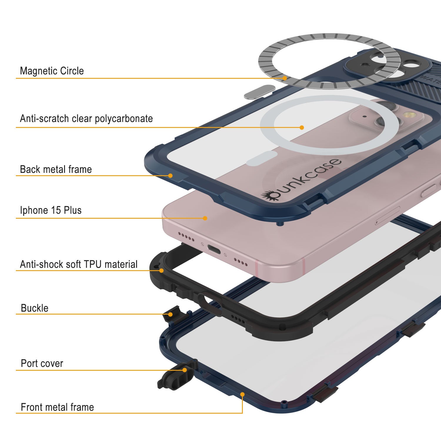 Coque étanche en aluminium Punkcase iPhone 15 Plus [Série Metal Extreme 2.0] IP68 avec pare-chocs robuste et protecteur d'écran intégré | Protection ultime pour votre iPhone 15 Plus (6,7")