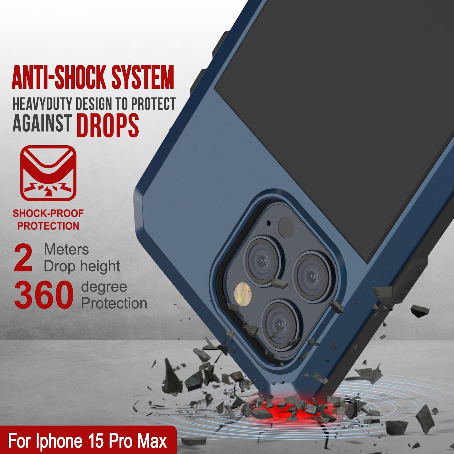 Coque Punkcase pour iPhone 15 Pro Max en métal | Étui de protection robuste de qualité militaire [Résistant aux chocs] Design en aluminium dur et TPU avec protecteur d'écran en verre trempé pour iPhone 15 Pro Max (6,7") (2023)