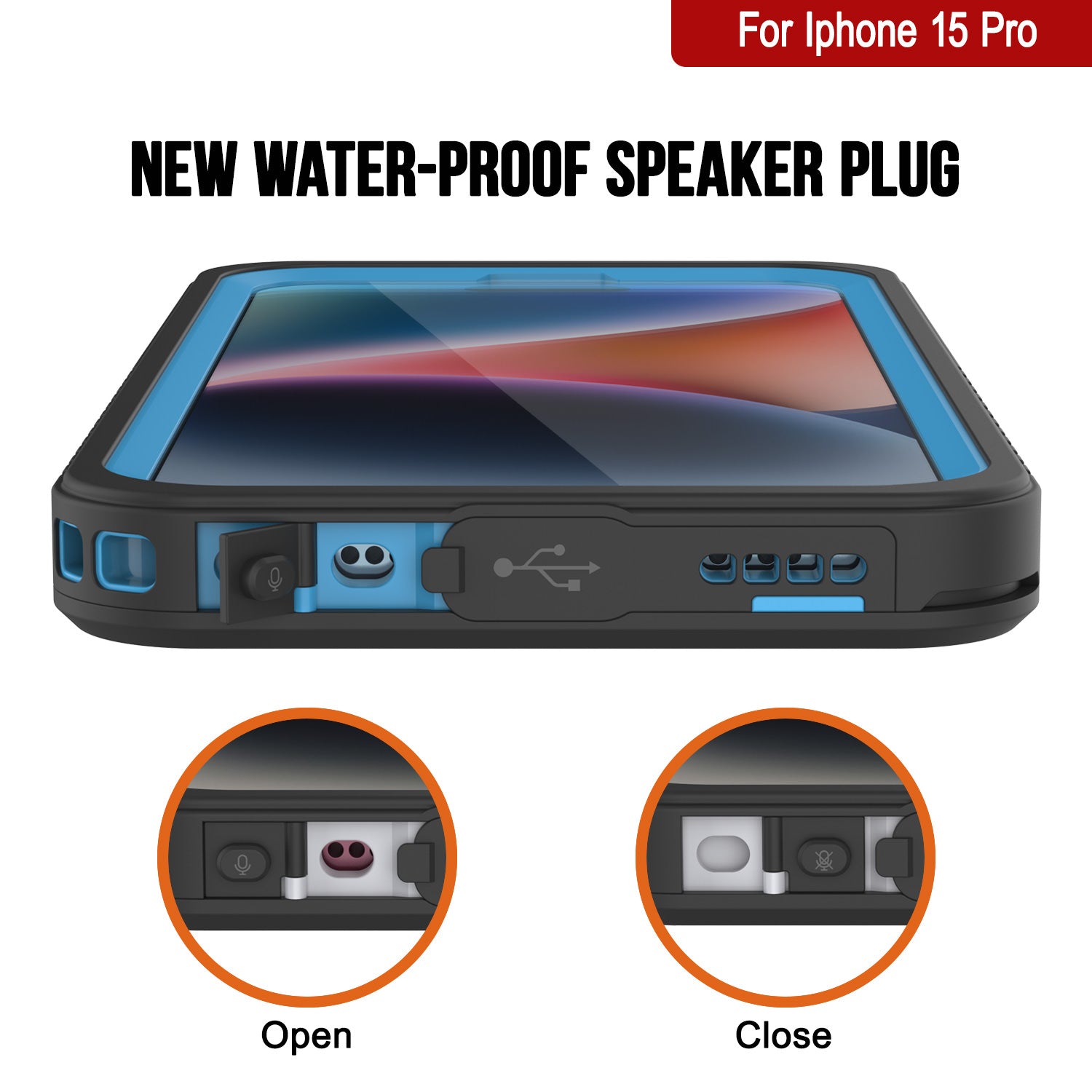 Coque étanche iPhone 15 Pro, Punkcase [Série Extreme] [Slim Fit] [Certifié IP68] [Antichoc] [Étanche à la neige] [Antipoussière] Coque en armure avec protecteur d'écran intégré pour Apple iPhone 15 Pro [Bleu clair]