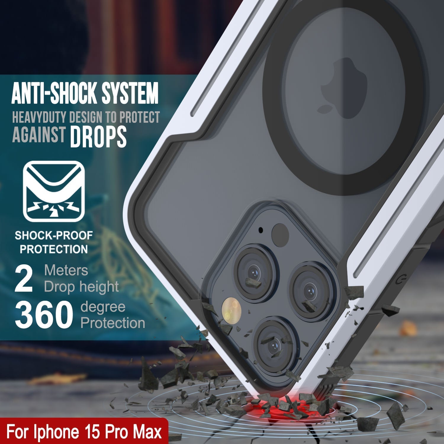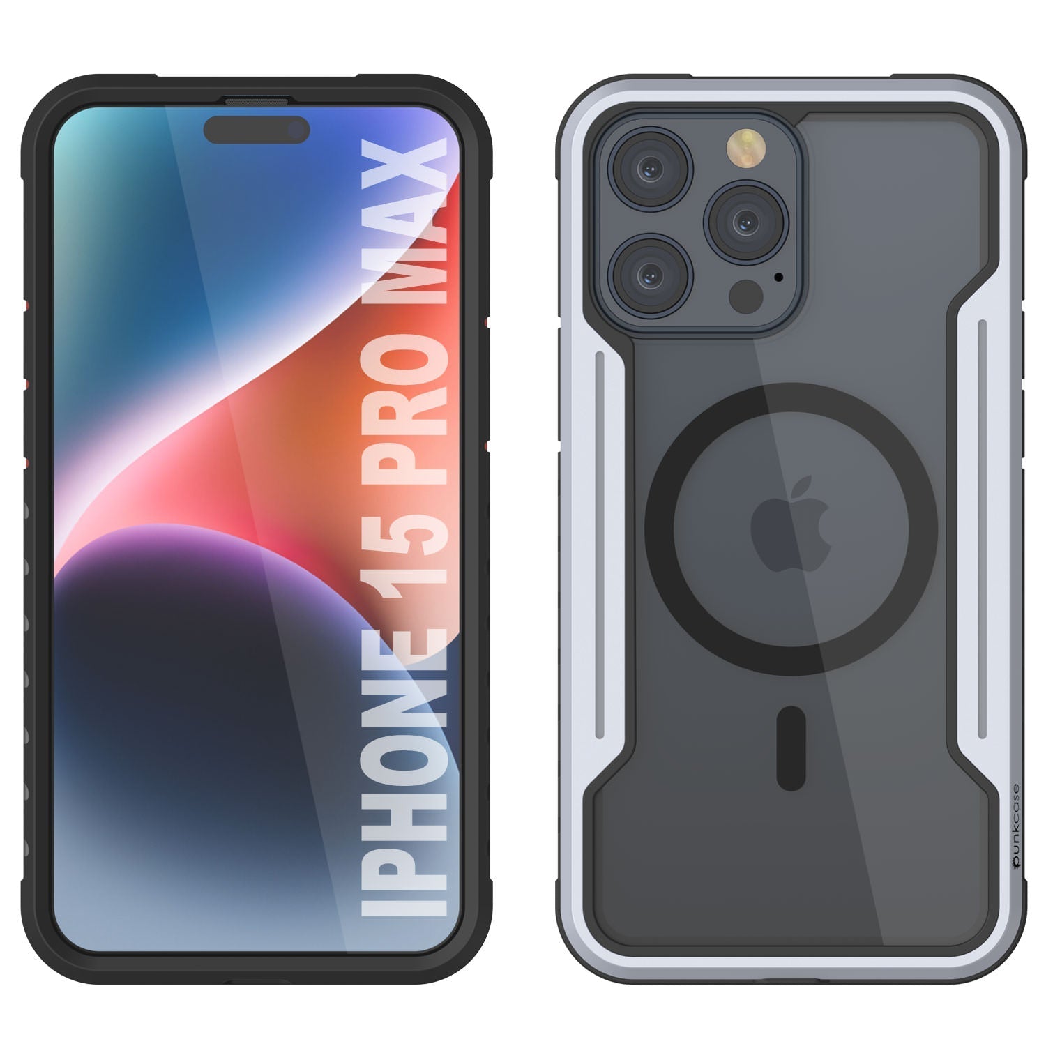 Punkcase iPhone 15 Pro Max [Armor Stealth Série MAG Defense] Coque ultra fine et protectrice de qualité militaire à couches multiples avec cadre en aluminium [dos transparent] Protection ultime contre les chutes pour votre iPhone 15 Pro Max (6,7") (2023 ) (blanc)
