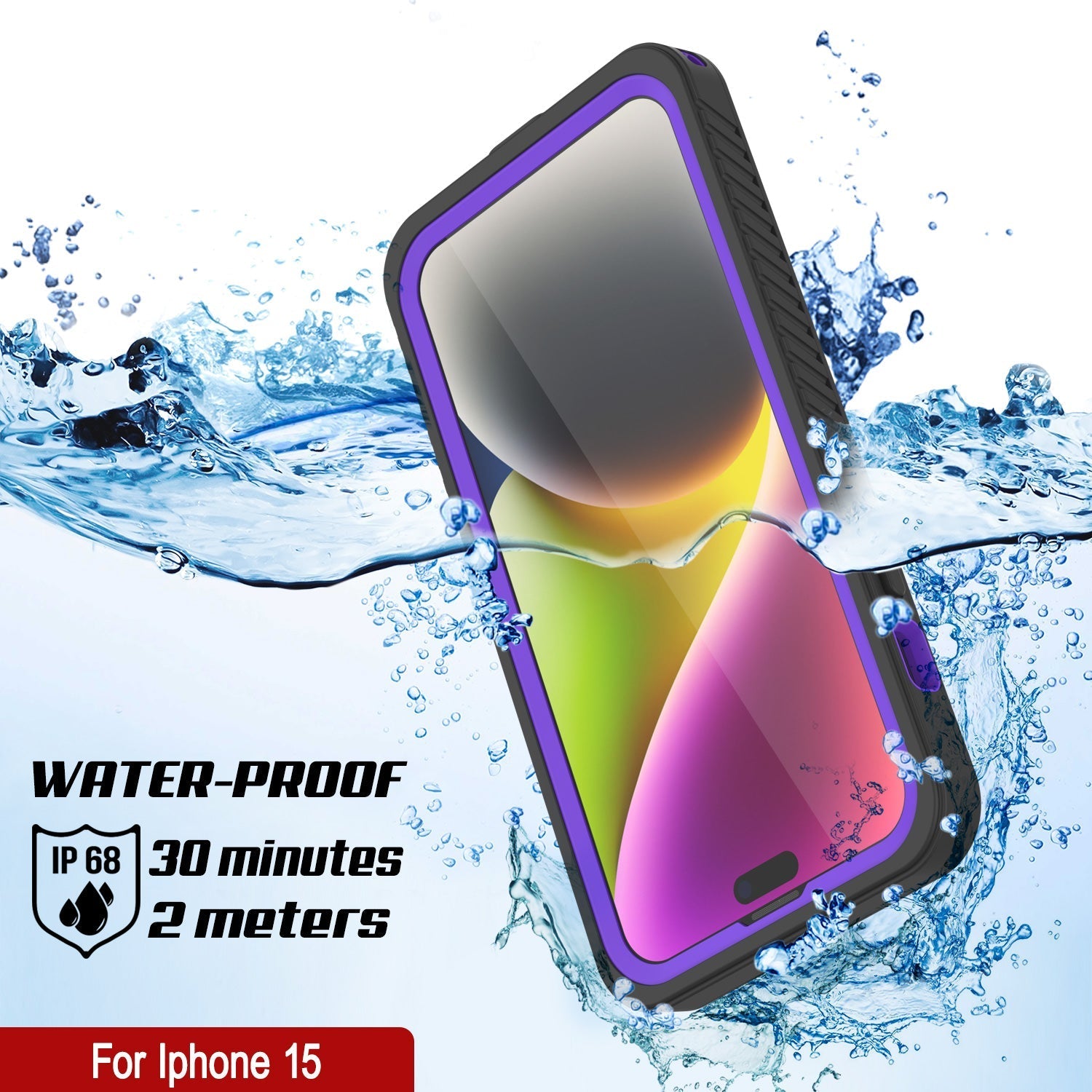 Coque étanche iPhone 15, Punkcase [Extreme Series] [Slim Fit] [Certifiée IP68] [Antichoc] [Antineige] [Antipoussière] Coque d'armure avec protecteur d'écran intégré pour Apple iPhone 15 [VIOLET]