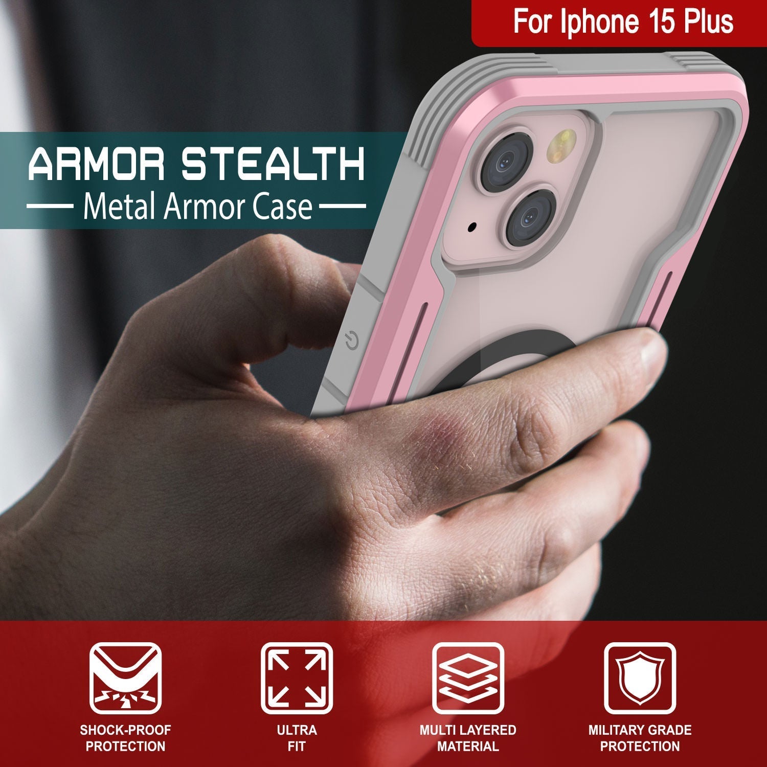 Punkcase iPhone 15 Plus Armor Stealth MAG Coque de défense protectrice de qualité militaire à plusieurs couches [or rose]