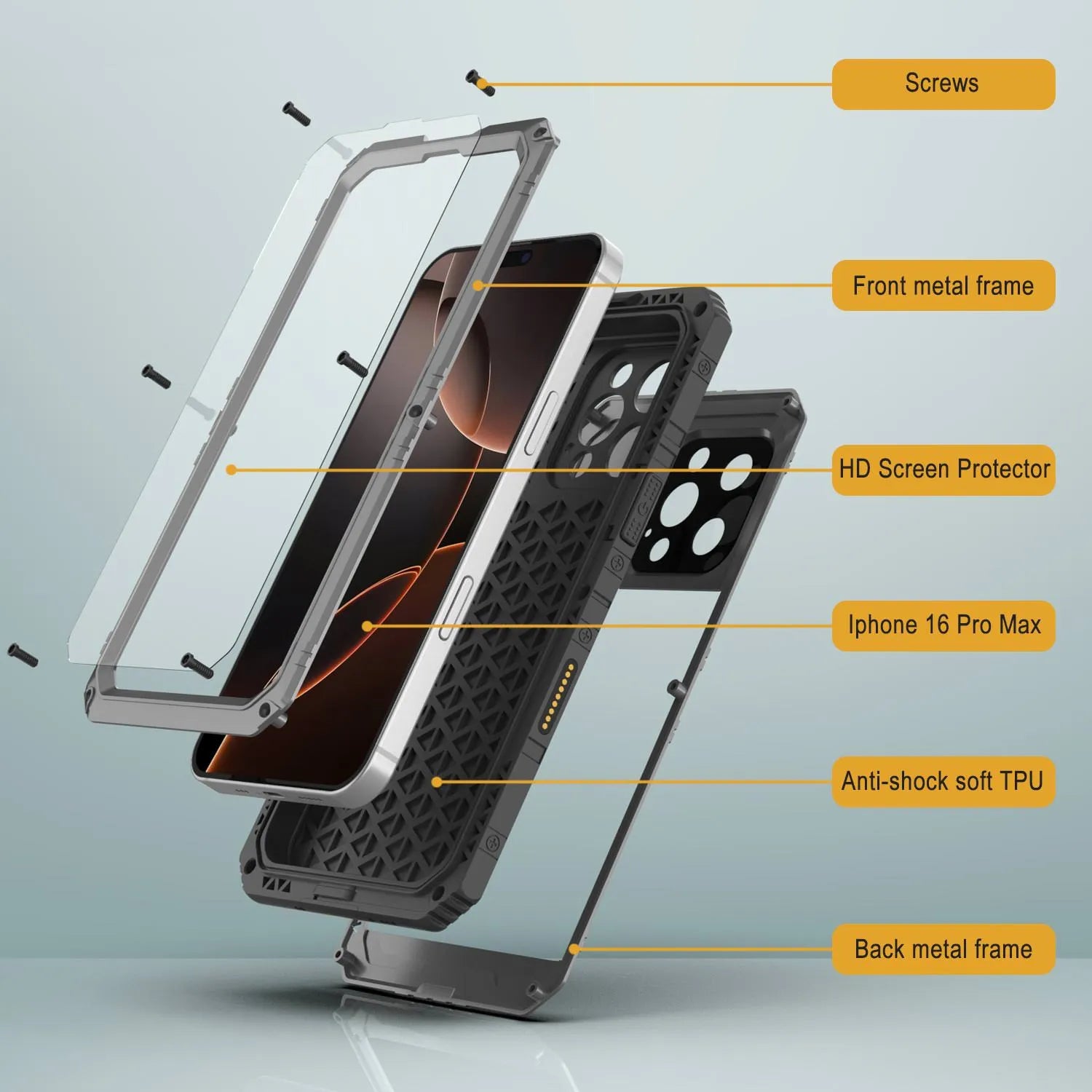 Punkcase iPhone 16 Pro Max Aluminium étanche en aluminium [Metal Extreme 3.0 Series] IP68 COUVERCLE ROPIDE ROBLED avec Buillt en protecteur d'écran | Protection ultime pour votre iPhone 16 Pro Max (6,9 ")