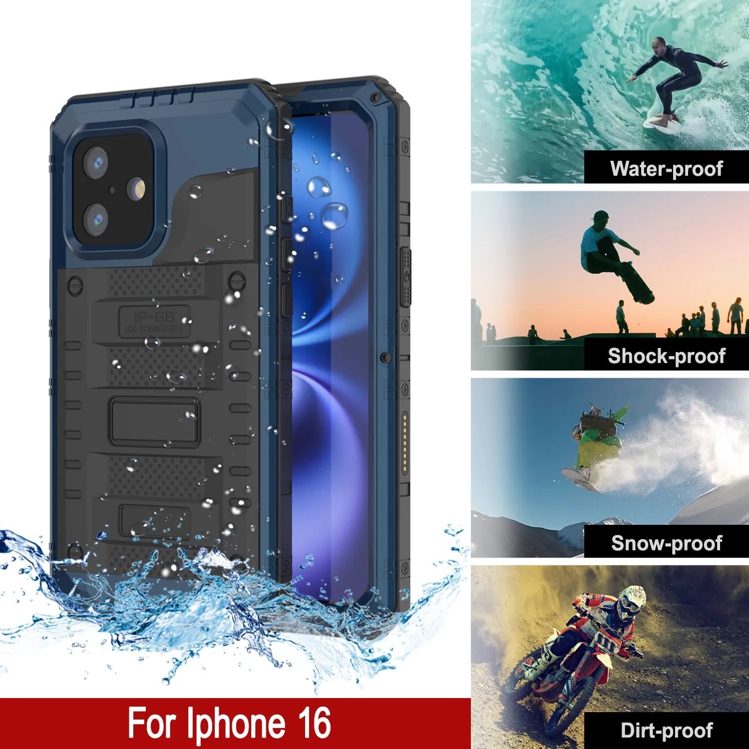 - ★ 100% punkoproof: prenez votre iPhone 16 lors de voyages en plongée en apnée, des déserts poussiéreux, des sentiers boueux ou du ski de la descente - votre boîtier Metal Extreme 3.0 vous gardera connecté et protégé, quelle que soit l'aventure dans laquelle vous vous trouvez | Imperméable: Certifié IP-68 - submersible jusqu'à 6,6 pieds | Dirt et épreuve de poussière: la protection avancée de la scellant bloque la saleté et la poussière de boucler vos ports | Affiche des chocs: robustesse de qualité militaire - Protégez votre téléphone des chutes jusqu'à 6,6 pieds