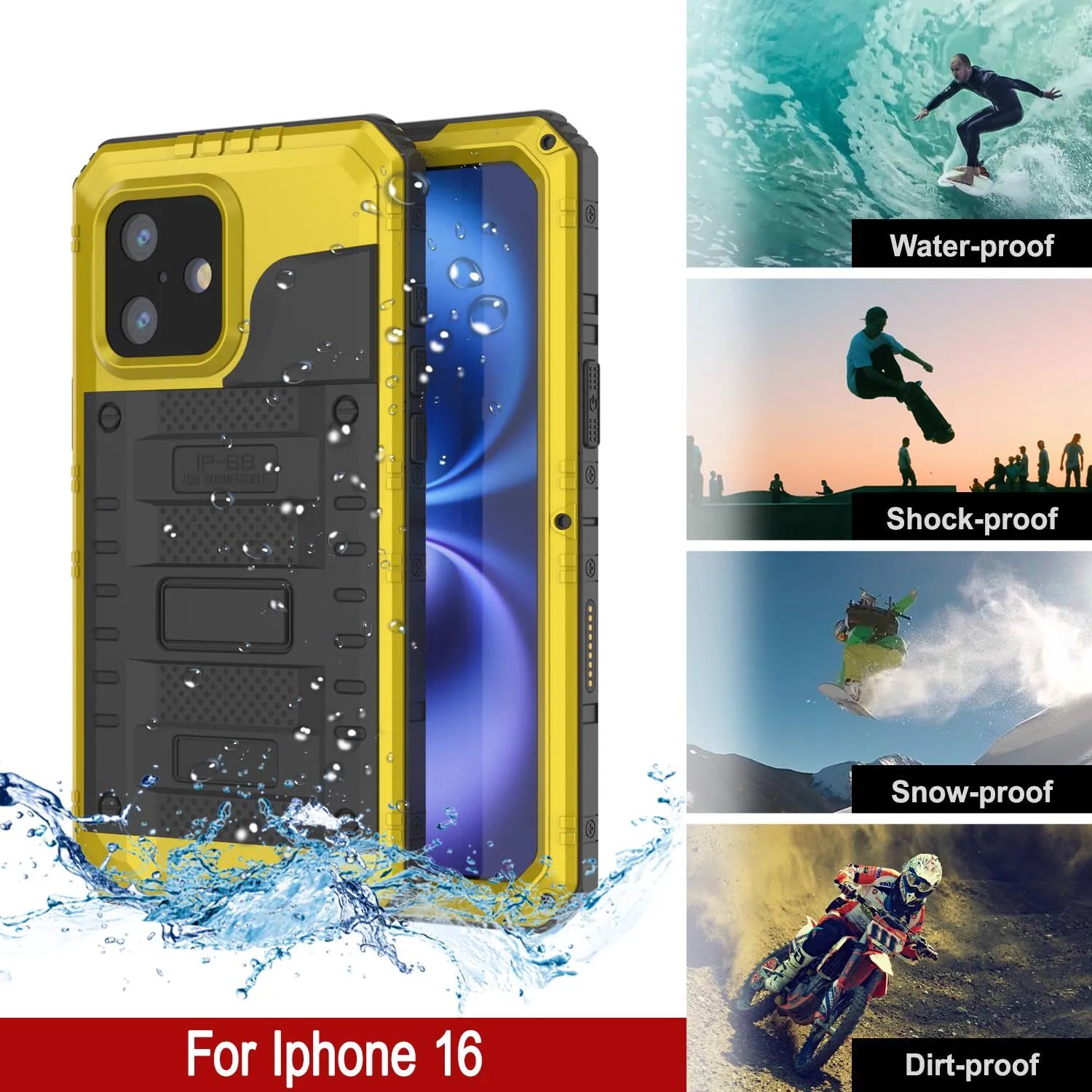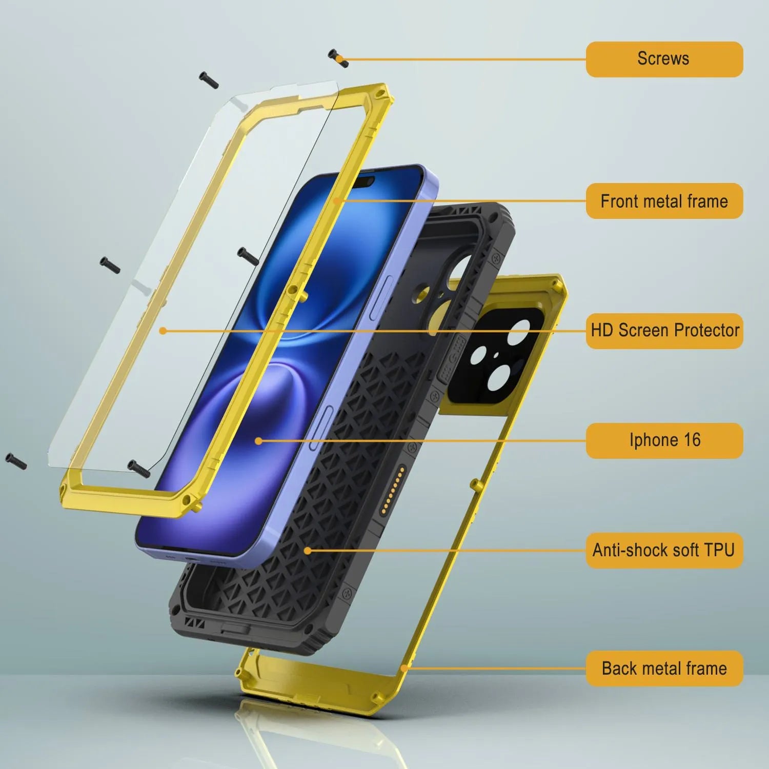 Punkcase iPhone 16 Étui en aluminium imperméable [Metal Extreme 3.0] IP68 COUVERTURE ROPIDE ROBLED avec Bouillt en protecteur d'écran | Protection ultime pour votre iPhone 16 (6,1 ")