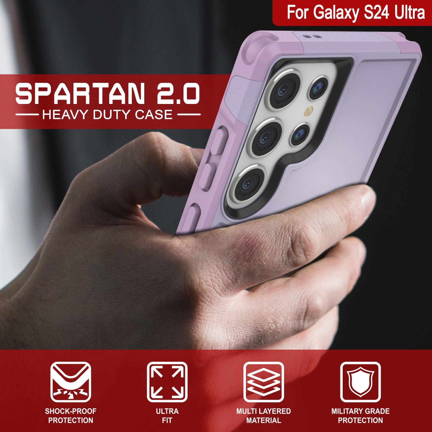 Coque PunkCase pour Galaxy S24 Ultra [Spartan 2.0] Transparente Robuste et Robuste | Protection Militaire Ultra Fine avec Conception de Rebord Relevé pour Galaxy S24 Ultra 5G (2024) (6,8") [Lilas]